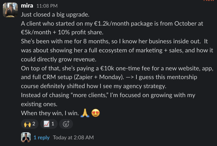 Previous and current agencies we have coached included digital marketing, design, ads, software development, personal branding, short-form content and b2b sales agencies.