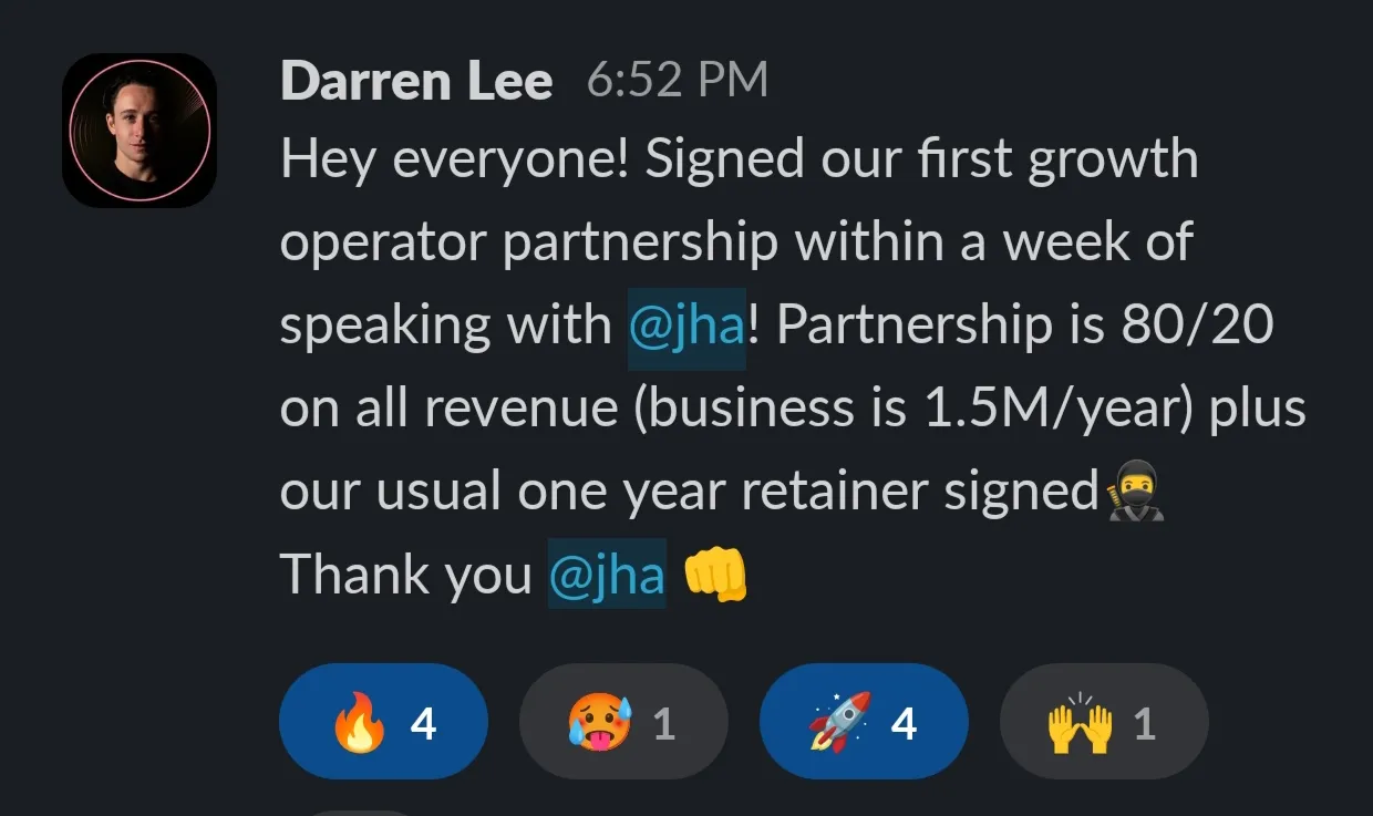 "I didn't expect to go so deep into the practical strategies, tactics and everything Genflow has done to get to 8 figures, the communication on slack and coaching sessions have been priceless"