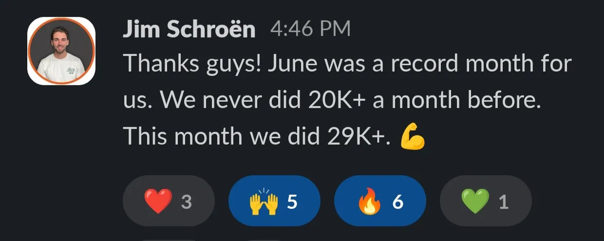 "We could scale past 20k and now doing 30k+. A8x helped us implement right structures in our business, outreach system, really happy with the course, program and 24/7 slack was super helpful."