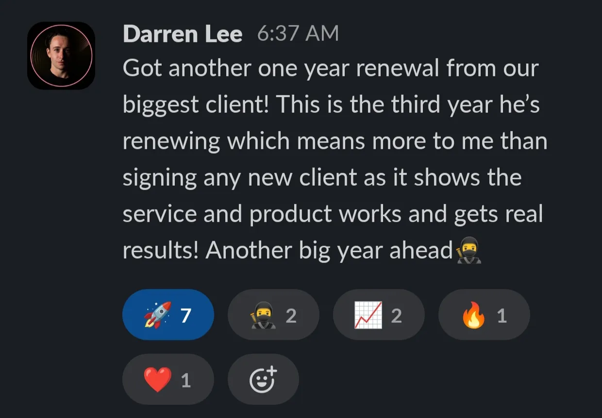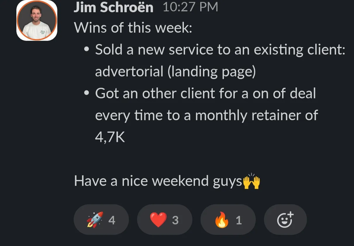 • Slack access with $100M Agency Leadership to get bespoke guidance via voicenotes, looms and concise messages.