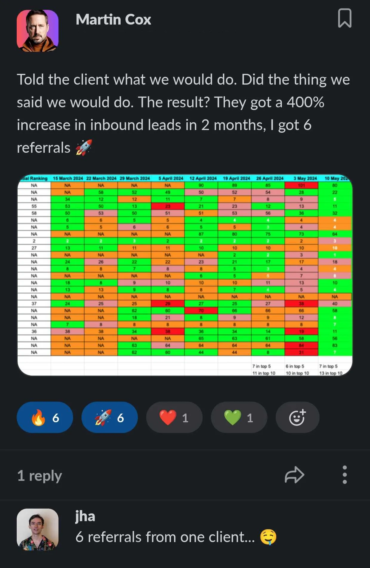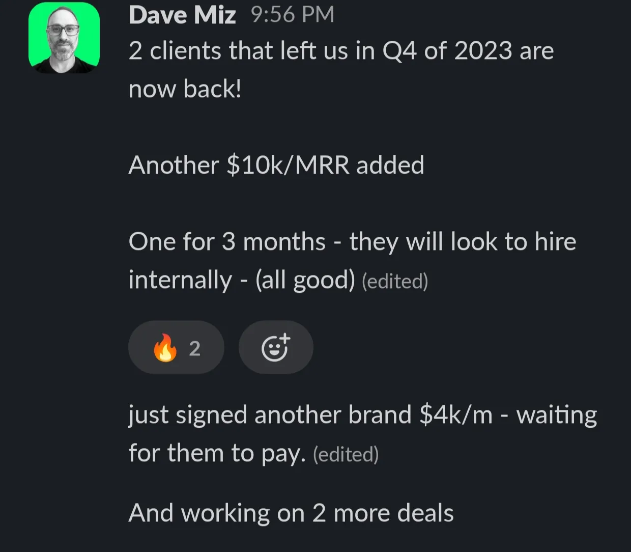 They achieved some amazing success such as signing more clients, setup better internal systems, figure out their strategy, work on their marketing message, launch new services, charge more fee's and just become overall better more strategic CEO's.
