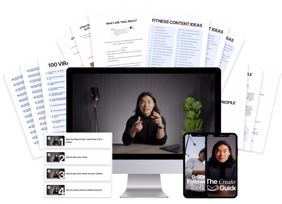 You will get access to a BRAND NEW free course by Jun Yuh that will show you how to come up with 100 free content ideas, no matter what you post about or what your skill set or business goals are. Plus, walk away with hooks, scripts and caption templates.