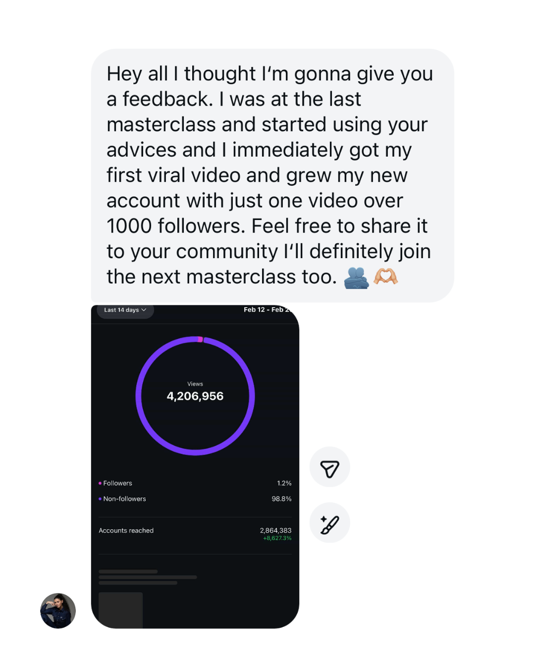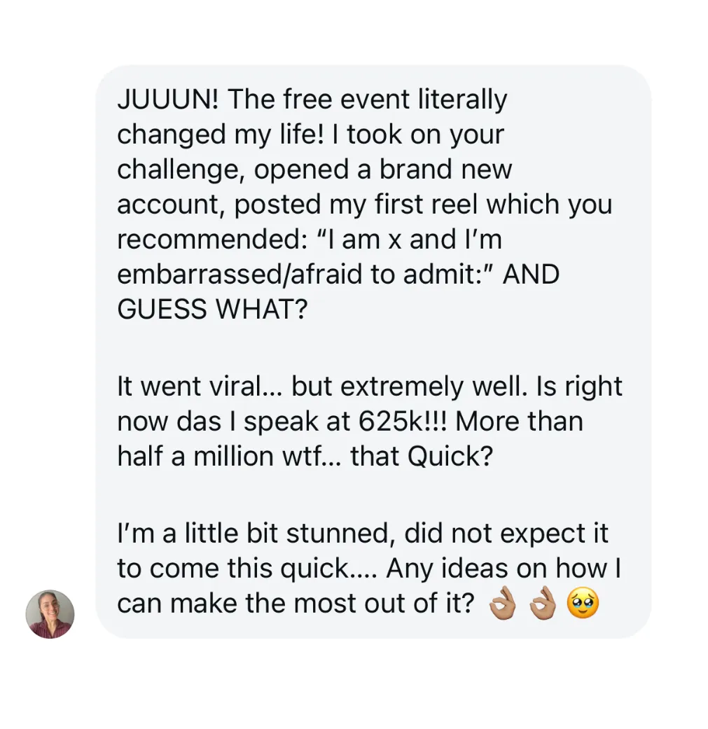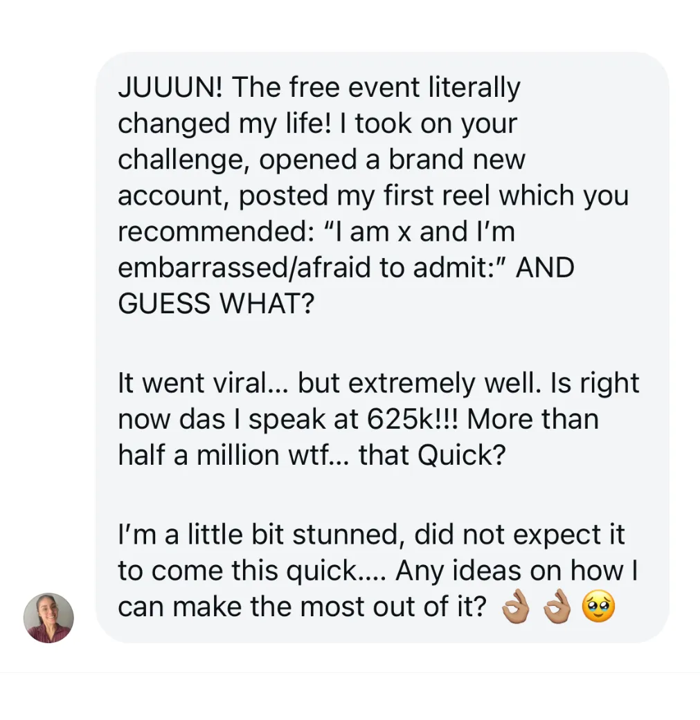 I did this without making content everyday, without fancy camera equipment, still being a student and was able to generate millions in sales. I know it sounds too good to be true, but it is possible with the right systems and strategy. Get yourself a ticket and come learn for free.