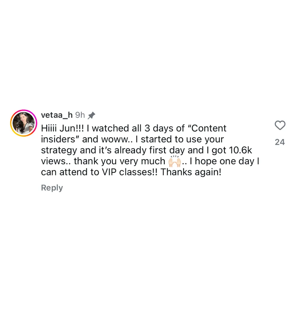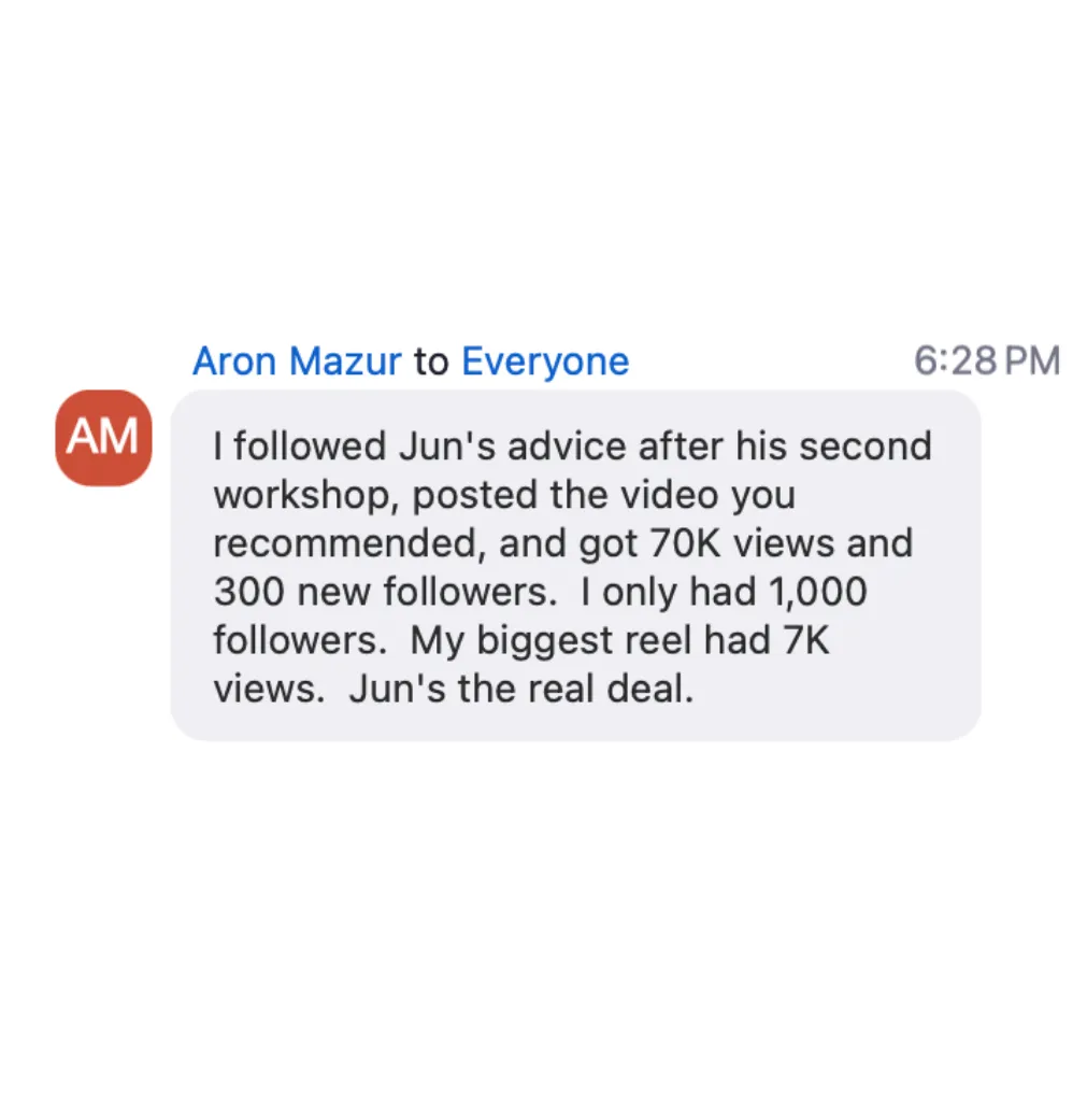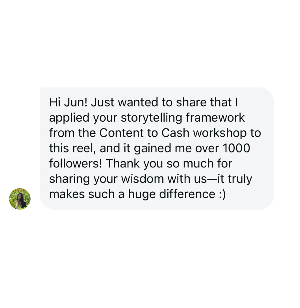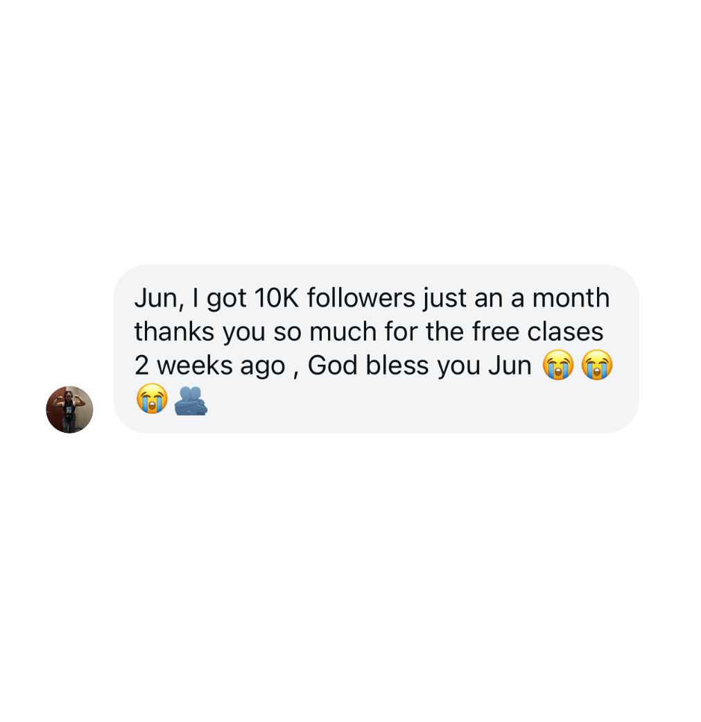Everything we teach you is based on the same frameworks used by Jun and 1000+ other creators